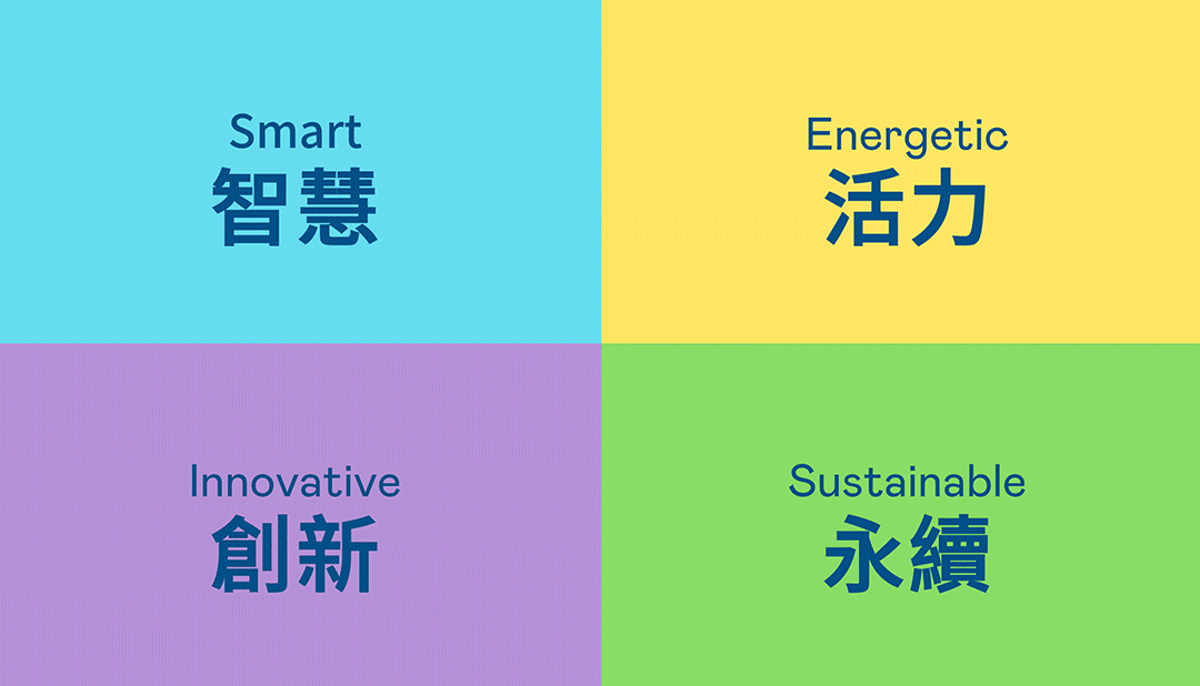 | 从稳重、信赖的大庄家蓝开创新色彩,注入象征智慧蓝、活力黄、创新紫、永续绿的品牌色及动态多变的几何图形,呼应不设限的「Possibilities」精神,代表多元的专业技术及领域,在碰撞中相互触动、融合、延伸,持续激荡出更多新的可能性。 |
